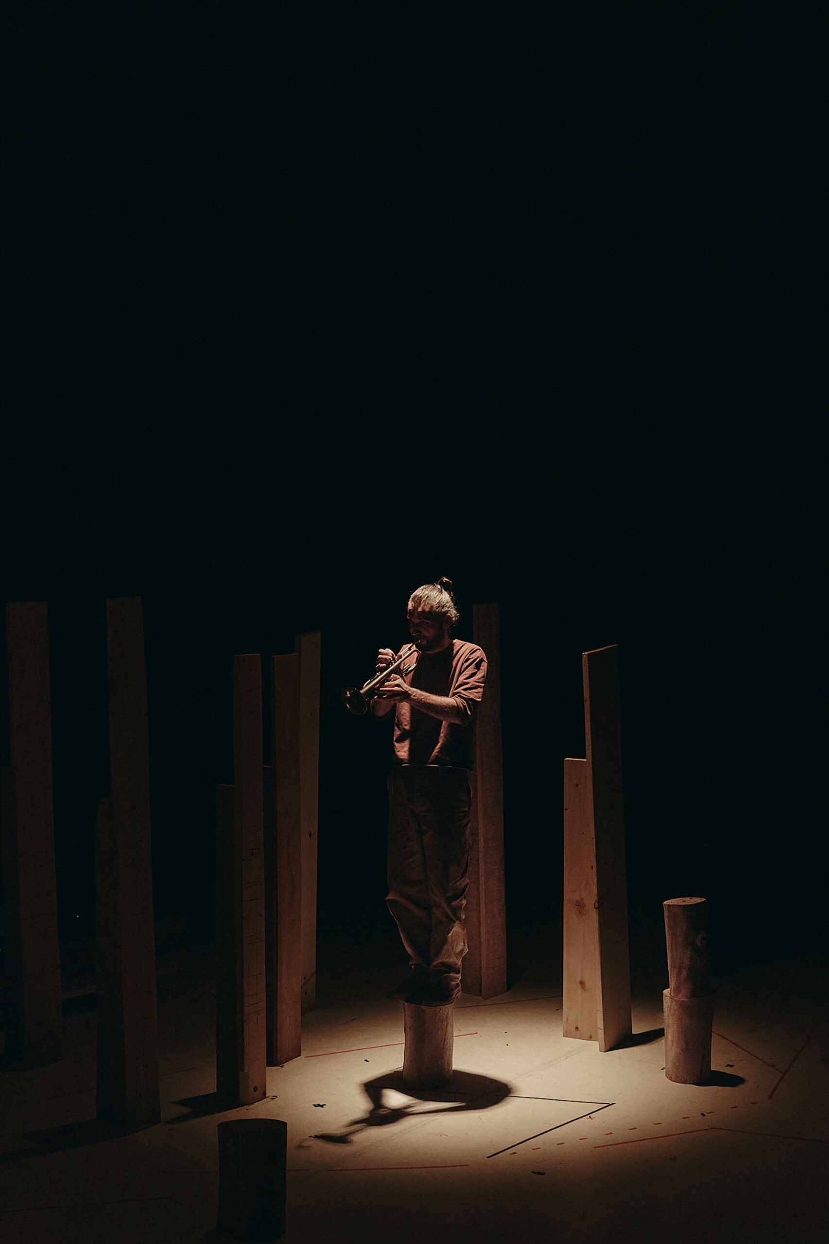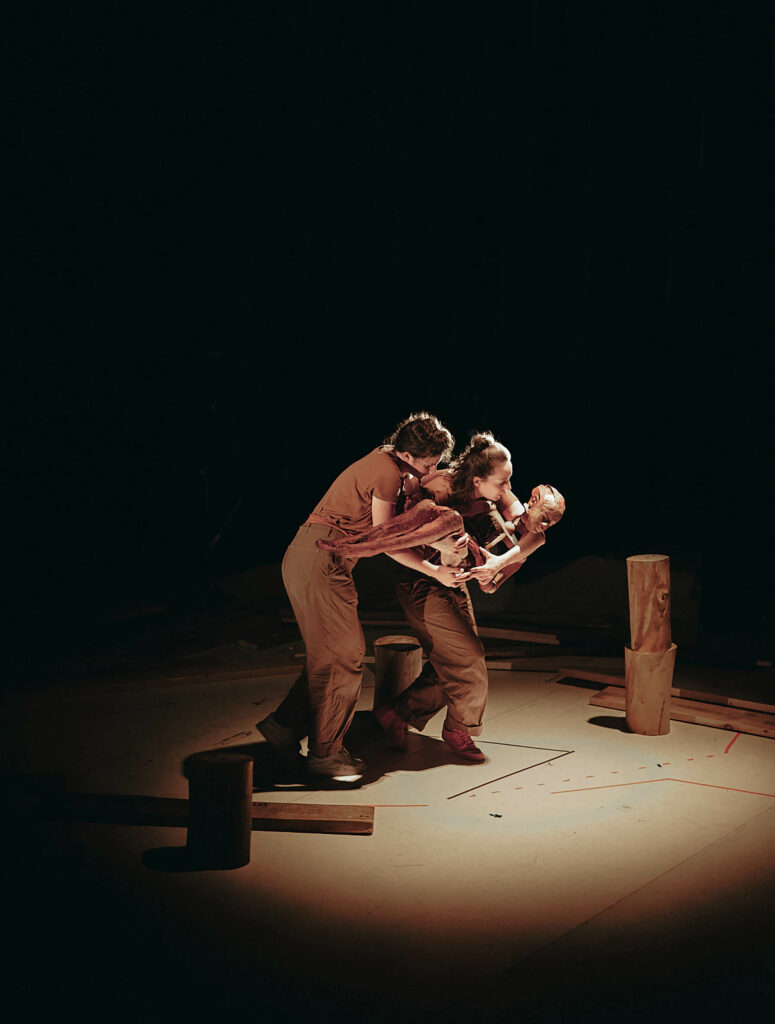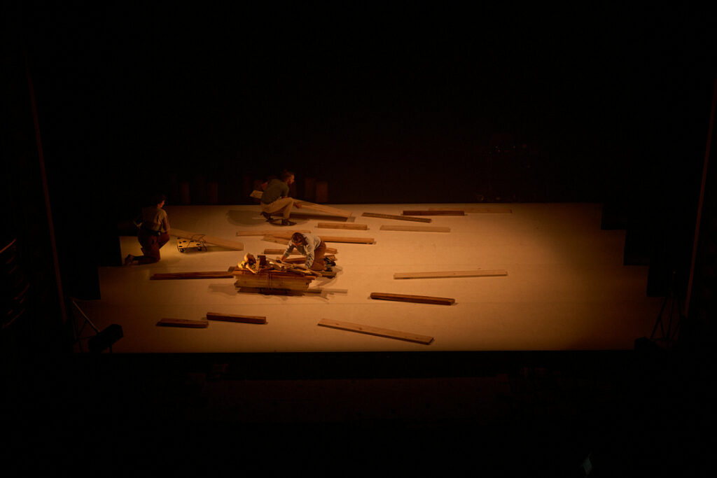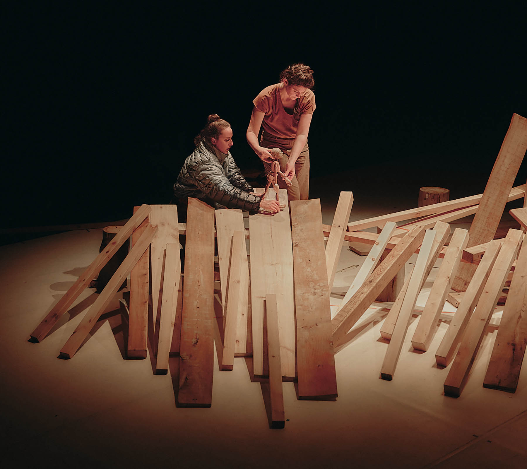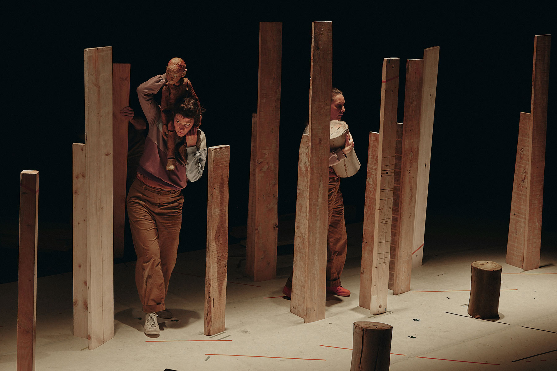 Avec Terre Étrangère, la Compagnie Juste Après tente de raconter l’exil et ces phénomènes de traversées multiples entre ICI et LÀ-BAS, avec des morceaux de bois… »