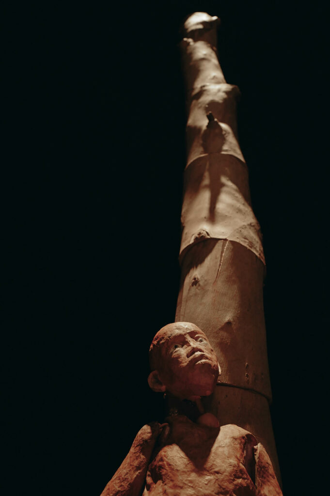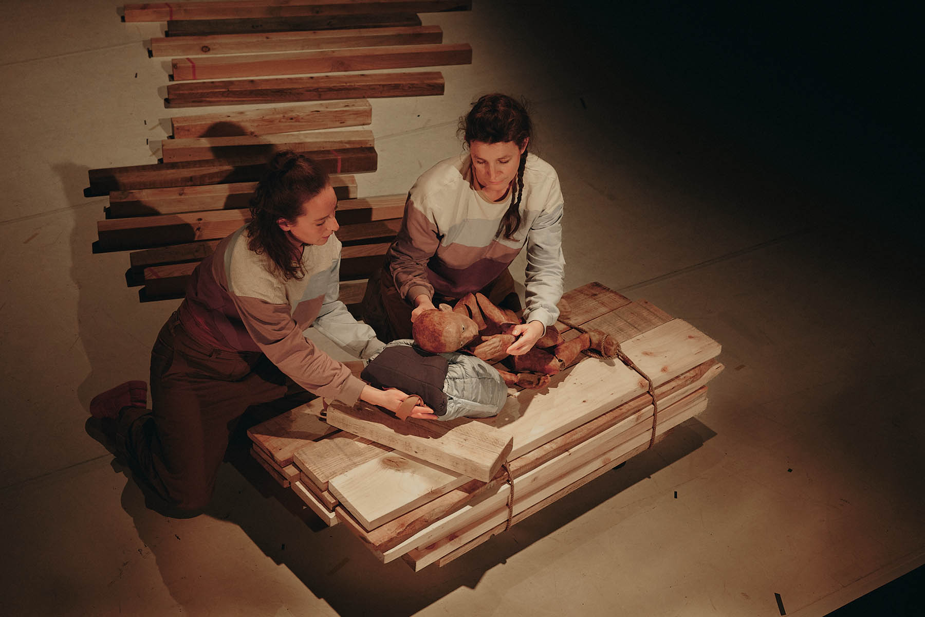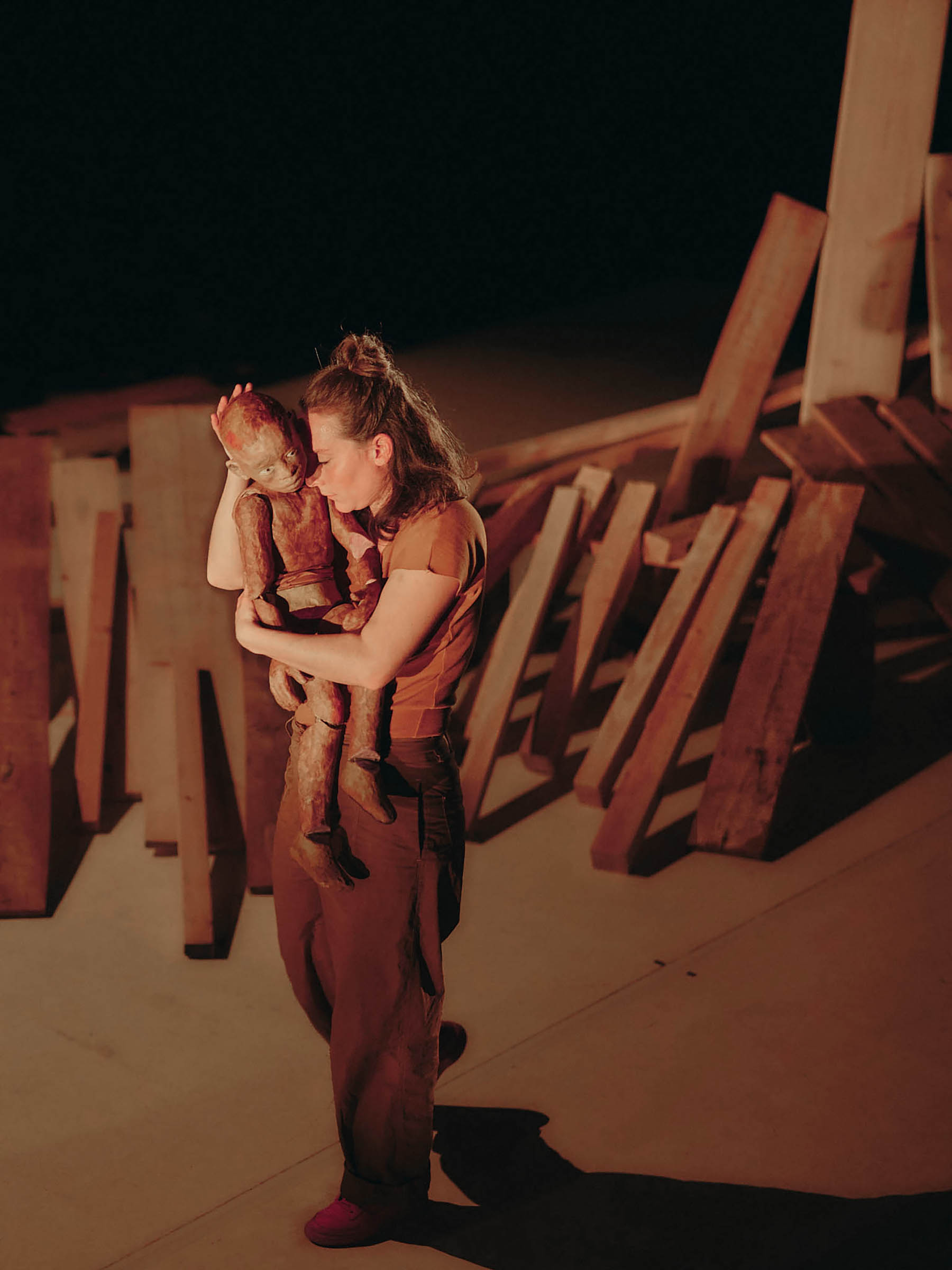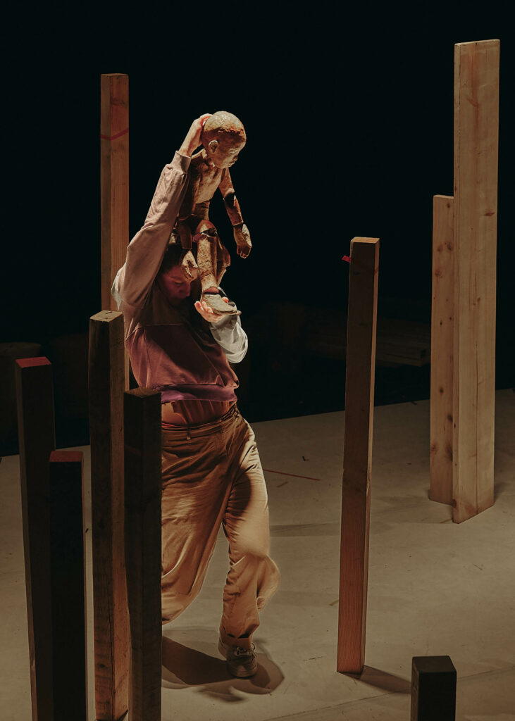 Avec Terre Étrangère, la Compagnie Juste Après tente de raconter l’exil et ces phénomènes de traversées multiples entre ICI et LÀ-BAS, avec des morceaux de bois… »